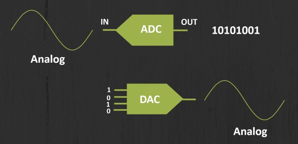 数字电路终端上的信号传输与存储,需要模数转换和数模转换,这个过程如下图所示: